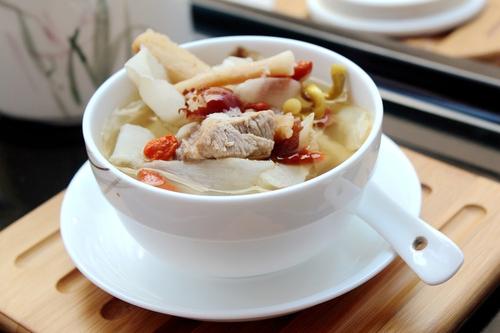 选用北沙参12克,玉竹9克,淮山门克,枸杞子10克,野水鸭肉150克,切件。将上述五物共放于沙锅内,煮汤,便可饮用。