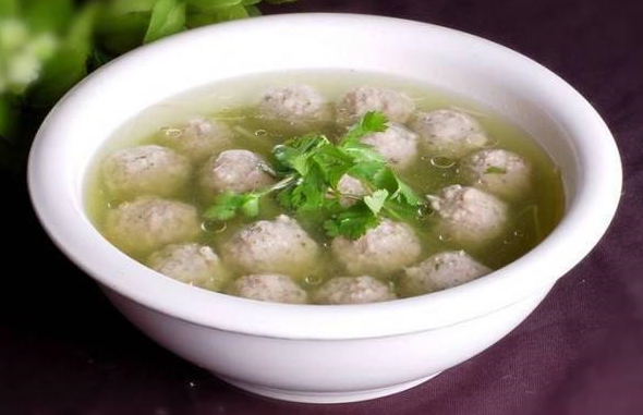 香莱也可此外铺在汤碗底端,将烧好的肉丸汤立即倒进汤碗,那样香莱不容易煮太过。