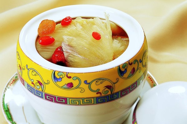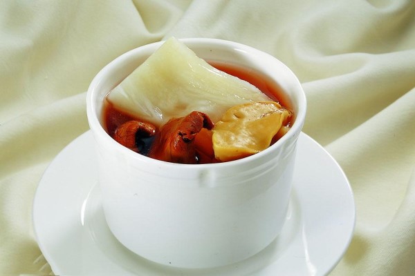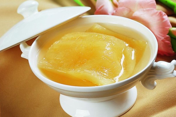 做法:锅中放入姜片会让花胶煮沸,然后将花胶的表面洗净,放入红枣枸杞,炖上三个小时左右,最后起锅之前加上冰糖,可根据自己的口味放入适当的冰糖;