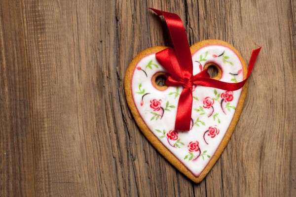9、再用小心型的磨具把可可粉面团刻成心型,再将心型的图案放到长方形上面,然后用吸管在饼干顶部印上一个小孔,方便烤制完成后可以完美的系上细带装饰。