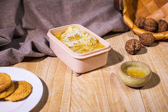 4、其他吃法:做甜品的时候可以用蜂巢蜜来做点缀;吃早餐时也可以放在面包中混合在一起吃;做菜时也可以适当加入蜂巢蜜提味。