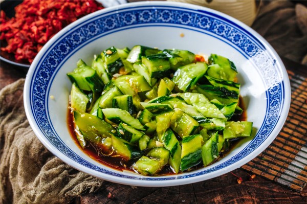 做法:将黄瓜洗干净切成细条状,然后用盐腌制十五分钟左右,加入一些渍水和少量的食醋、白糖进行搅拌,最后有保鲜膜封住放入冰箱,等到二十分钟之后就可以端出来食用,如果孕妇觉得放入冰箱里的黄瓜比较冰,可以拿出来在常温下放一会儿再进行食用。
