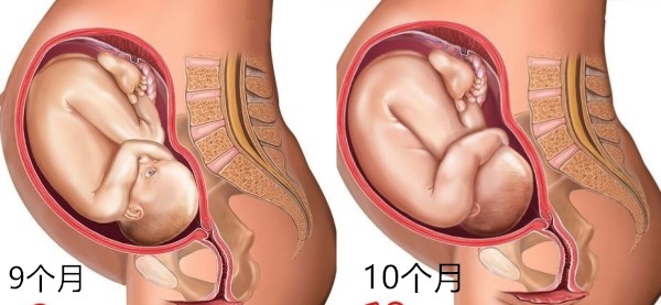 9个月的时候肚子基本不会再长大,此时胎儿的位置已经头朝下固定,身长大概有45cm,体重有2000g以上,皮下脂肪开始生长,头发大概有5cm长,各个器官发育成熟,对母体外的光开始有反应;