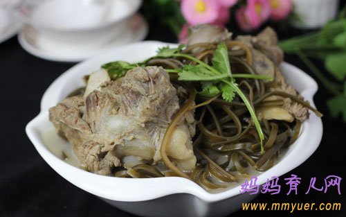 3.猪棒骨六成熟时放海带下锅,并加入适量的醋。