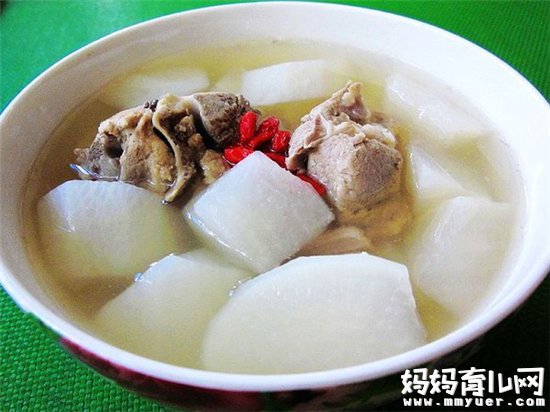 白萝卜排骨汤可消食健胃,理气化痰,用于治疗厌食症。白萝卜味甘性凉,宽中下气,消食化痰;排骨甘平,补虚弱,强筋骨,与萝卜炖服,气香味鲜,是美味的催乳佳肴。