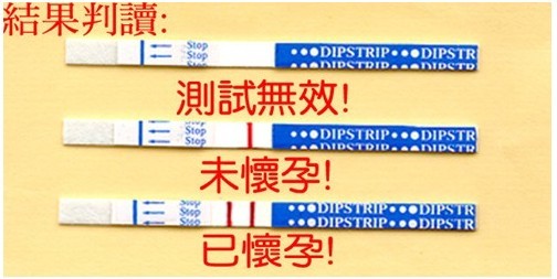 各种早孕试纸产品在显示结果的方式上也会有所不同:有些产品会在试纸的检测区出现一条粉色或蓝色的线(色带),而有些则在一个小窗口里显示红色加号或减号。