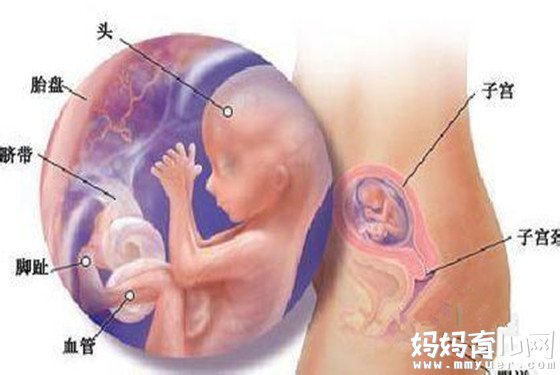 胎盘也已经具体成形,胎儿在羊水里面动来动去,似乎是相当自在的样子。有时左右腿还可交替做屈伸动作,双手能伸向脸部,这说明脊髓等中枢神经已非常发达了。