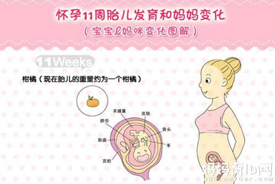 第三个星期(第11周)时,胎儿大小可达到40——60mm,胎儿的体重可达到14克左右。宝宝的生长速度从本周起将会越来越明显,现在,孕妈妈从这个时候起,也不必为流产而过多地担心了。