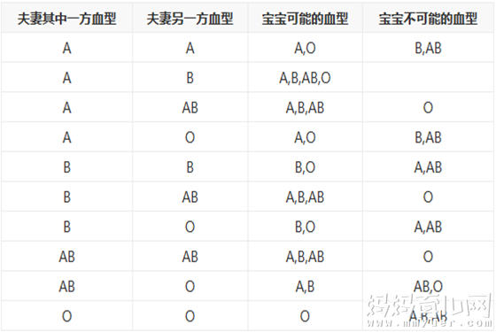 以常见血型ABO型为例,血型是以A、B、O等三种遗传因子的组合而决定的,大多根据父母的血型即可判断出宝宝可能出现的血型。