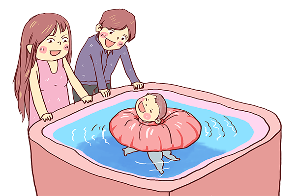 3.给婴儿选择合适的游泳圈,大小、尺寸和质量都要过关;游泳的时候一定要陪同,不能放婴儿一人在泳池中。