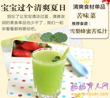 没有哪一个季节能够像夏季那样那么欢迎苦味菜,像芹菜、芥菜、芥蓝、苦瓜都是这类蔬菜典型代表。这类菜式可以帮助孩子降心火,是夏季养生、养心的优良食材。淡淡的苦味不受孩子喜欢?没关系,不妨将蔬菜榨成汁,再调下味道,就好喝很多了。