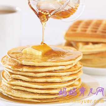 简便省时间的还有“Pancake"和“Waffle"。“Pancake"叫薄烤饼,用面粉,鸡蛋和牛奶煎成。吃的时候可加蜂蜜。“Waffle"是一种格子松饼。源于比利时,现在美国早餐更常见。也是用鸡蛋,面粉和牛奶制成,还有大量的糖。