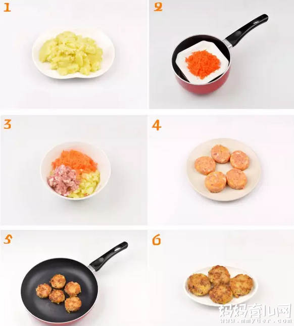 步骤4:将土豆胡萝卜肉末捏成小圆饼的形状。