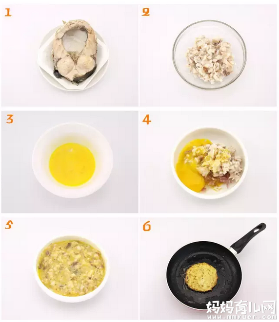 步骤7:将平底锅烧热,锅中刷上一层薄薄的食用油,将步骤6的鱼泥蛋黄糊做成小圆饼。