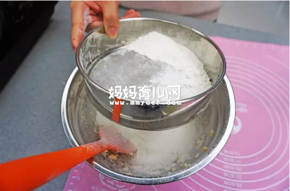 3.筛入低筋面粉,用刮刀搅拌均匀。