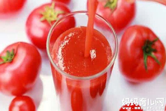 将蕃茄洗净,用开水烫软去皮,然后切碎,用清洁的双层纱布包好,把蕃茄汁挤入小盆内。将白糖放入汁中,用温开水冲调后即可饮用。