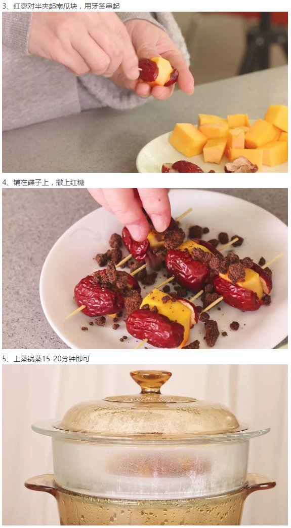 高免疫力,给各位爸妈推荐一款能提高免疫力、补气血的点心——红枣红糖蒸南瓜!