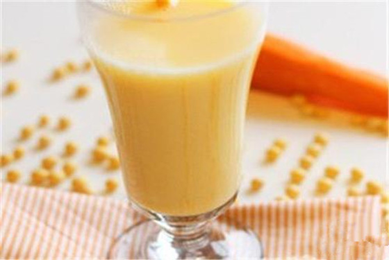 3、一般约15分钟左右,豆浆就煮好了,倒进滤杯滤出豆渣,再根据各人口味加入适量的糖,也可不加,因为胡萝卜有天然的甜味。