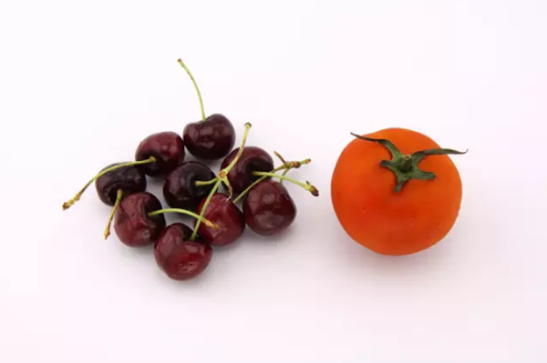 准备食材:西红柿1个、樱桃10颗