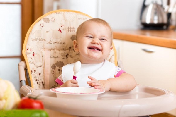 通常情况下,八个月大的宝贝就开始产生了吃饭的乐趣,当妈妈正在用勺子喂宝宝的时候,宝宝会不自觉地来抓妈妈手中的勺子,不自觉的抓碗里的食物,这样的挑逗会让孩子心里感到兴奋;
