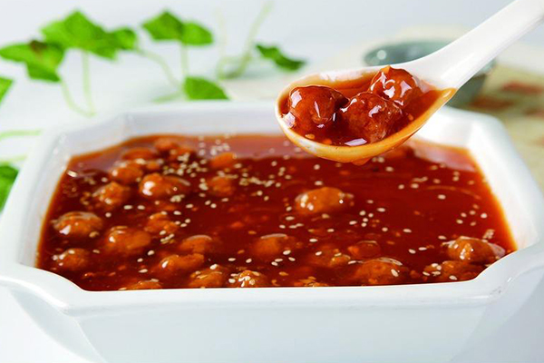 锅中倒入酱汁煮沸,再将丸子倒入反复翻炒,并小火焖煮,大概10分钟后出锅即可