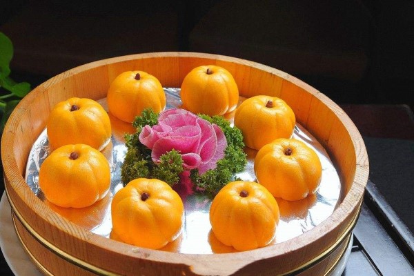 10、这样简单有好吃的南瓜甜品就做好了,而且家长可以用豆沙馅或者绿豆馅等加入到南瓜甜品当中,根据自己的口味进行调配和改造吧!