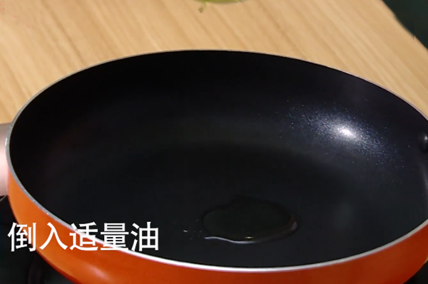 4、平底锅倒入适量的油(最好是花生油或者橄榄油,宝宝要尽量少吃菜油,容易腹泻)