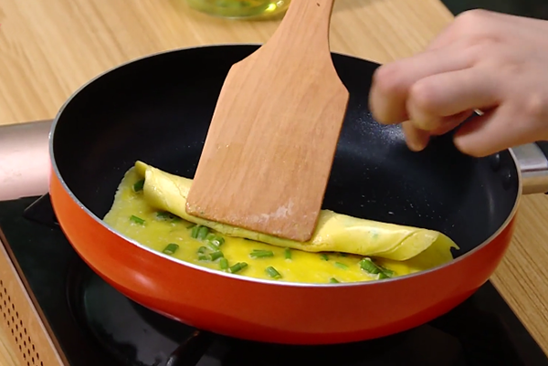 10、飘着阵阵葱香的鸡蛋饼完成了