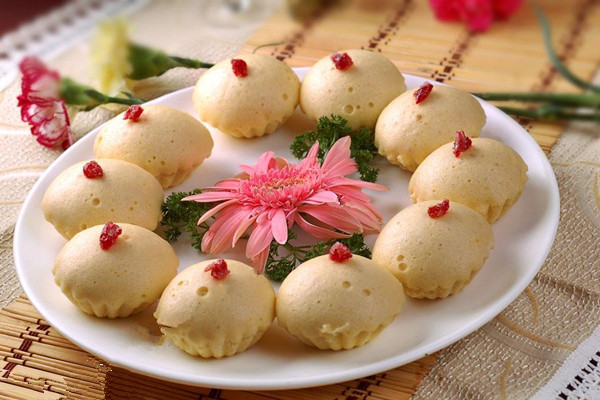 做法:将红枣洗净去除枣核切成碎粒备用,然后将鸡蛋、水、酵母以及白糖用打蛋器搅拌均匀;再继续加入面粉充分的搅拌成鸡蛋糊,将准备好的面糊倒入模具中放入烤箱烤熟,烤熟后去除撒上红枣粒再在锅中隔水蒸3-5分钟即可起锅食用。