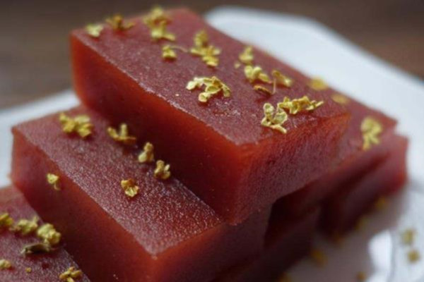 做法:将需要使用的食材准备齐全,山楂提前用清水淘洗干净;在淡盐水中浸泡后去籽备用;准备一个小锅倒入适量的清水和准备好的山楂,山楂在锅中煮好后倒入搅拌机中,制成细腻的山楂泥;再用滤网进行过滤加入白砂糖继续慢煮,最后加入鱼胶倒在模具山即可。