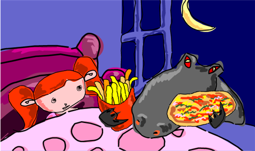 A hungry monsterKnocking at the window。(一只饥饿怪物敲着窗。)