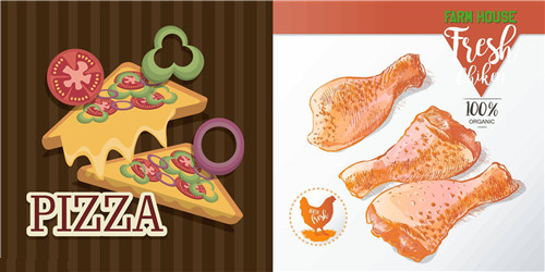 2、pizza,chicken(披萨,炸鸡)图片以及单词卡片
