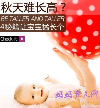 谁说秋季难长高,谁说秋天宝宝不长个?其实爸妈在秋季如果能够把握时机给宝宝补充丰富的营养,并配合增高运动,保证充足睡眠,也能够有效帮助宝宝长高呢!