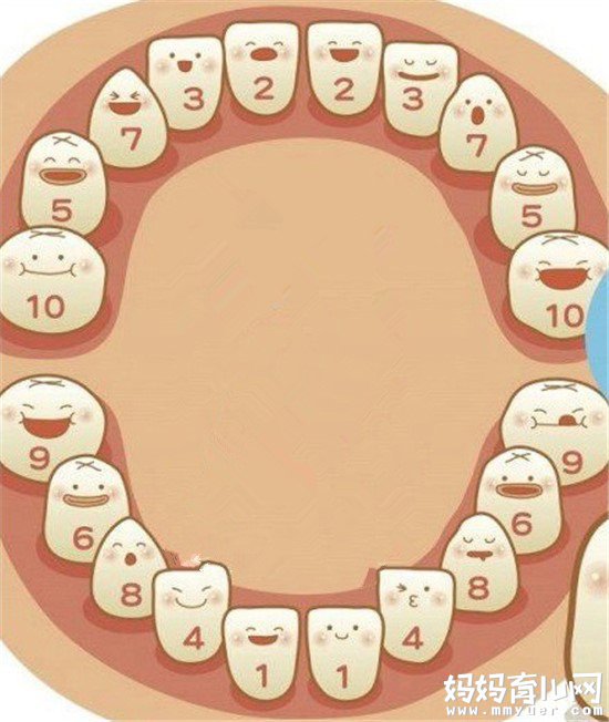 父母可采用下列公式简单地估算一下:出牙数(婴儿)=月龄一(4或6)。例如10个月的婴儿,乳牙应为4颗或6颗;在1岁时多数已有6-8颗乳牙;2岁时乳牙应出齐,共为20颗。