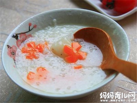 做法:将胡萝卜及山药切成小块状,先将粳米加水煮粥,半熟时加入胡萝卜及山药,再煮成粥。