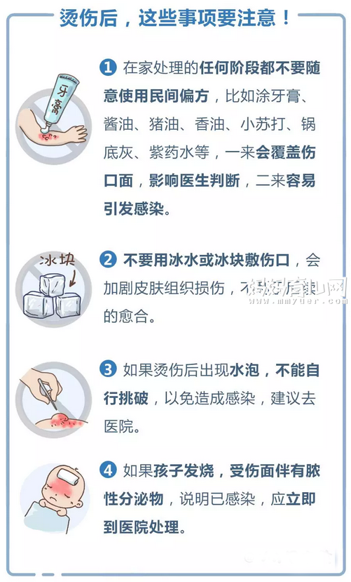 关于宝宝烫伤之后的处理办法,小编此文已经介绍得非常详细了。如果你觉得此文有用,那不防收藏起来防患于未然吧。当然,我更希望,所有的宝宝都不要用到此方法,每个孩子的一生都能健康快乐的成长。
