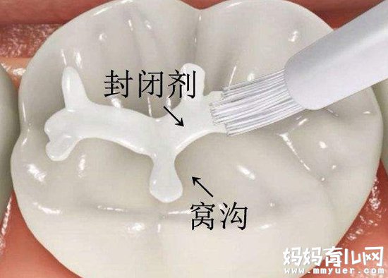 牙齿窝沟封闭指不磨除牙体组织,在牙齿的十字形窝沟内涂上一层树脂类物质,形成保护性屏障,隔绝细菌和酸对牙齿的侵蚀。儿童所患龋齿90%为窝沟龋。窝沟易残存食物,不易清洁,而窝沟封闭能够有效预防窝沟龋。刚萌出的磨牙窝沟形态复杂,深浅不一,缺乏自洁功能,而且钙化程度低,抗菌能力差。由于磨牙位置靠后,不好清洁,容易发生龋病,故应做窝沟封闭。