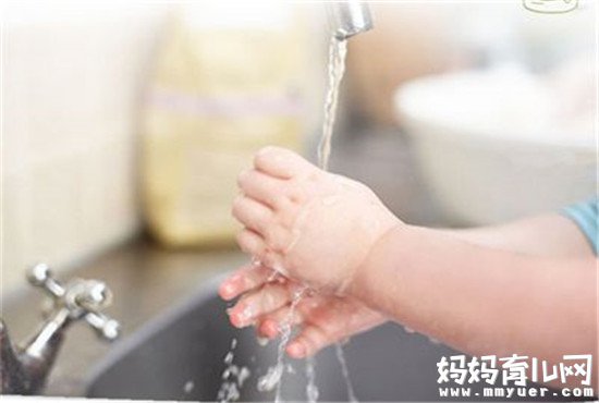 让宝宝养成饭前便后洗手的好习惯,注意日常卫生。洗手最好是自来水直接冲洗。