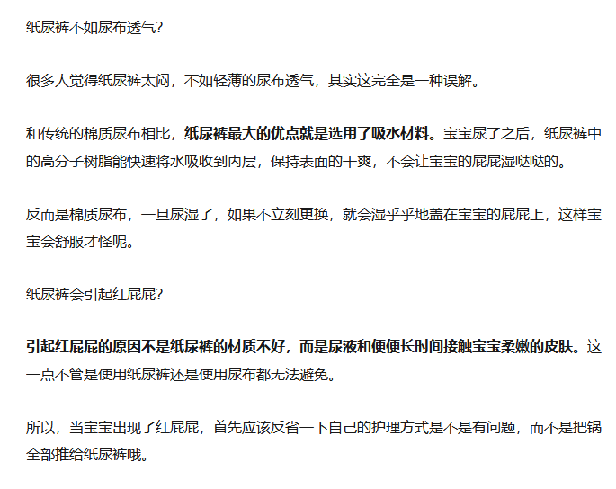 其实,对于网传说纸尿裤会引起宝宝O形腿,会导致宝宝红屁屁,还有可能引起私处感染(因为透气),纸尿裤也觉得自己挺冤的。因为,传言说纸尿裤会对宝宝的健康带来影响,都是没有依据的谣言,如下图: