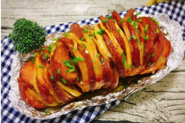 做法:将土豆洗净后去皮切成薄片,注意在切时不要切断,然后将切好的土豆放在清水中浸泡十分钟捞出备用;将准备好的培根切成小块,同时将土豆放入微波炉内制熟;再将培根放入土豆的缝隙处,均匀的撒上适量的食盐和胡椒粉,并且刷上一层薄薄的油,再次放入微波炉热至5分钟即可食用。