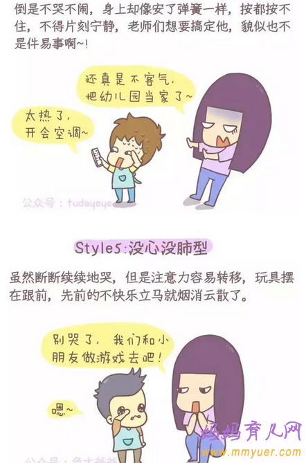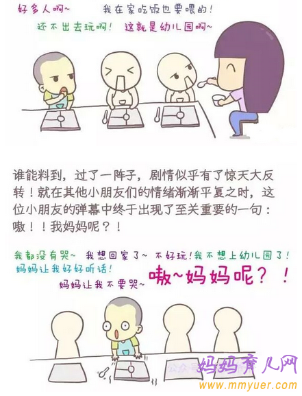 但妈妈你也不用开心得太早,因为从第二天或第三天开始,对幼儿园的恐惧则会慢慢增加,直至一段时间孩子完全适应了园内生活,才得以终止。