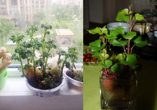 栽培:以芽多头大的一端朝上放入容器,加入清水不可超过薯身的一半,以防腐烂。