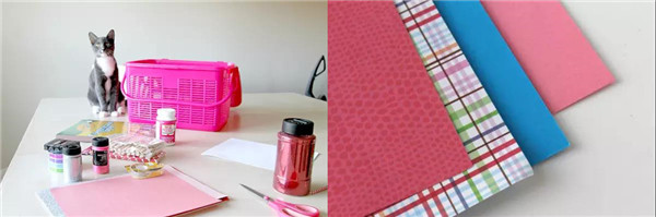 准备材料:卡纸、胶水、丝带