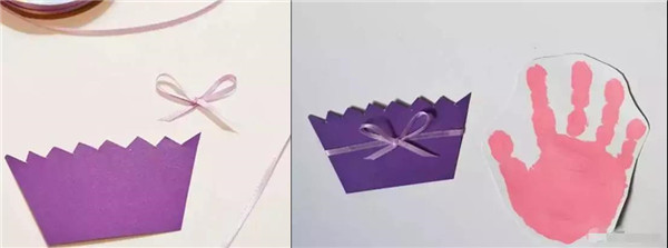 剪好蛋糕底座,蝴蝶结丝带。把手印留白延边剪下来。