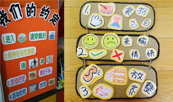 区角游戏为孩子们搭建了一个个初级社会的的模型,在这些小社会里,也是需要规则提示来帮助孩子更好地融入集体!