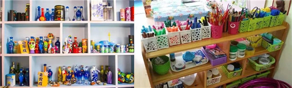 美工区的材料丰富,有绘画、印画、版画、折纸、剪纸、粘贴等。是锻炼幼儿对于艺术的开发与创意。
