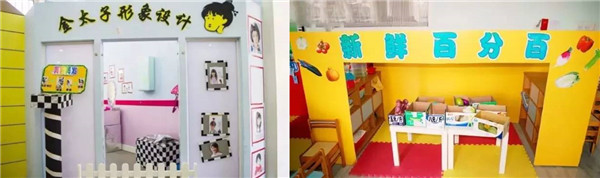 角色区,也就是角色扮演生活相贴近,体现亲近感。创设一个与幼儿生活相关的场景,让幼儿从侧面了解社会,增加社会生活经验。
