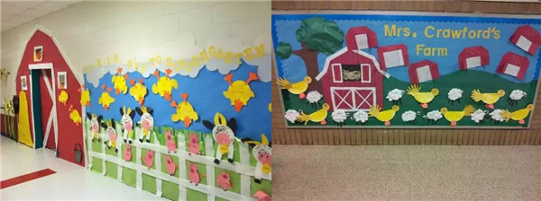 把各班走的风格或者元素,也可以根据班级名字涉及相关环创门饰等,让幼儿在这样间接的提醒下,知道自己所在班级的情况。