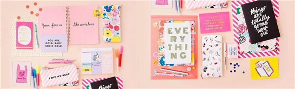 一个清新简单又好玩的洛杉矶牌子,创始人是两个爱好发饰的美国女孩,它家的文具各种色彩缤纷!还有充满乐趣的贴纸、各种花色的胶带……适合各个年龄阶段的女孩子们,让她们一下午都在探究这里面的奥秘!看着这么美丽的颜色和设计,让我都动心了!