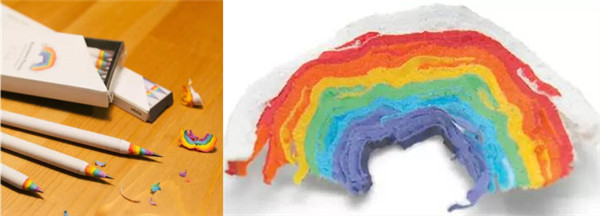 彩虹铅笔来自于英国设计师的设计产,坚持环保理念,由可回收的6种颜色再生纸制造而成,拒绝过度砍伐树木。这支美好的铅笔,削着削着,一道彩虹就会出现,孩子做作业能拥有好心情!而且很适合每个年龄阶段的小朋友,使用时心情也像彩虹一般!